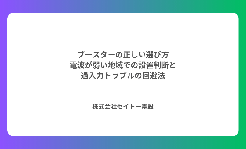 ブースターは「つければ改善する」ではなく、「正しく選んで正しく設置して初めて改善する」機器であることを、この現場は改めて教えてくれました。