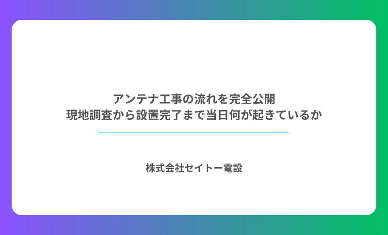 今回は、帯広・十勝エリアで数多くのアンテナ工事を担当してきた株式会社セイトー電設の電気工事士の視点から、工事の流れを工程ごとに完全公開します。