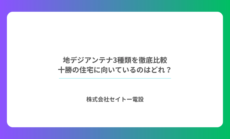 今回は、帯広・十勝エリアで数多くのアンテナ工事に携わってきた株式会社セイトー電設の電気工事士の視点から、3種類のアンテナを比較しながら、十勝の住宅に向いている選び方をお伝えします。