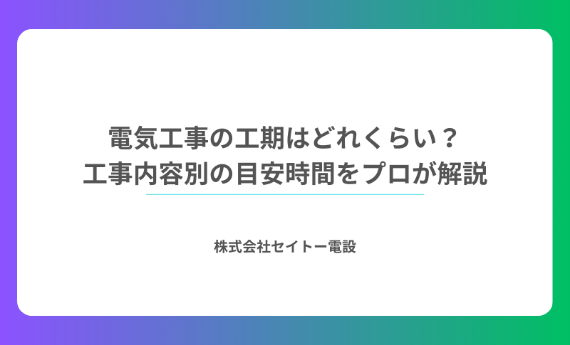 電気工事の工期は、内容によって様々ですが、決して「長ければいい」「早ければいい」というものではありません。