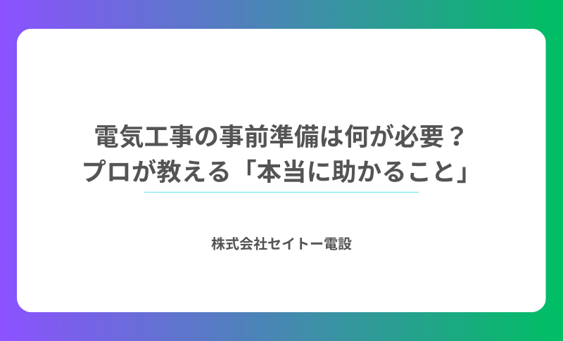 今回は、現場の人間が本音で語る「電気工事の事前準備」についてお話しします。無理のない範囲で、お互いが気持ちよく当日を迎えられるような考え方を一緒に整理していきましょう。