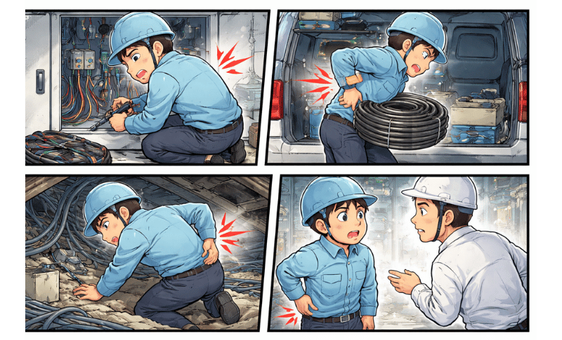 多くの電気工事士が腰痛を経験する背景には、仕事内容そのものに原因が隠れています。