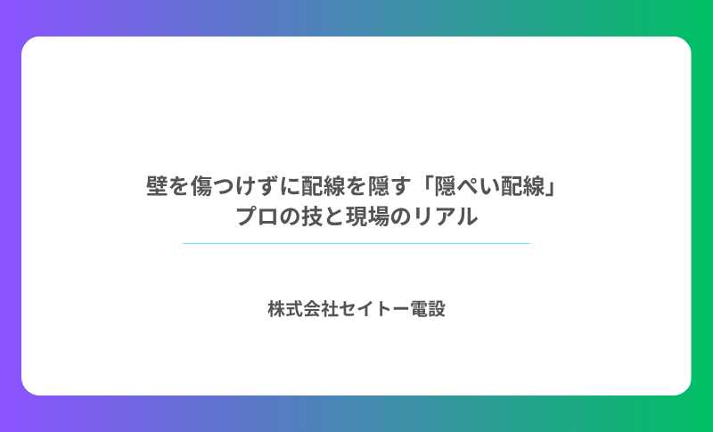 「リフォームしたばかりの壁を傷つけずにエアコンを設置したい」「新しいコンセントを増やしたいが、配線をきれいに隠したい」——そんなご要望があれば、ぜひ株式会社セイトー電設にご相談ください。建物の構造を確認しながら、壁や天井への影響を最小限に抑えた施工プランをご提案します。
