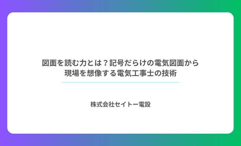 記号だらけの一枚の紙が、職人の手と経験を通じて、誰かの暮らしを支える電気設備へと変わっていく。その過程に関われることを誇りに思いながら、株式会社セイトー電設はこれからも図面と現場に誠実に向き合い続けます。