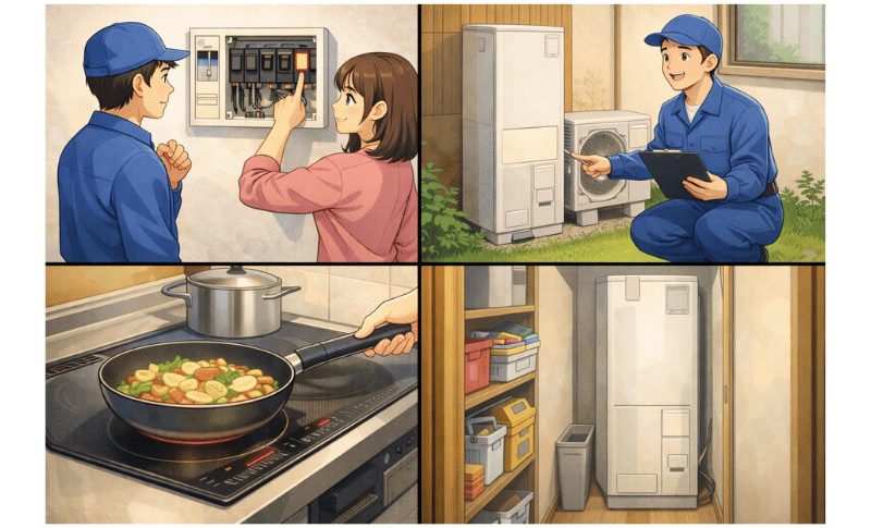 今回は、IHやエコキュートの設置を検討する際に知っておきたい注意点について、現場の視点からお話しします。難しく考える必要はありませんが、長く安心して使っていただくための大切なポイントを一緒に整理していきましょう。