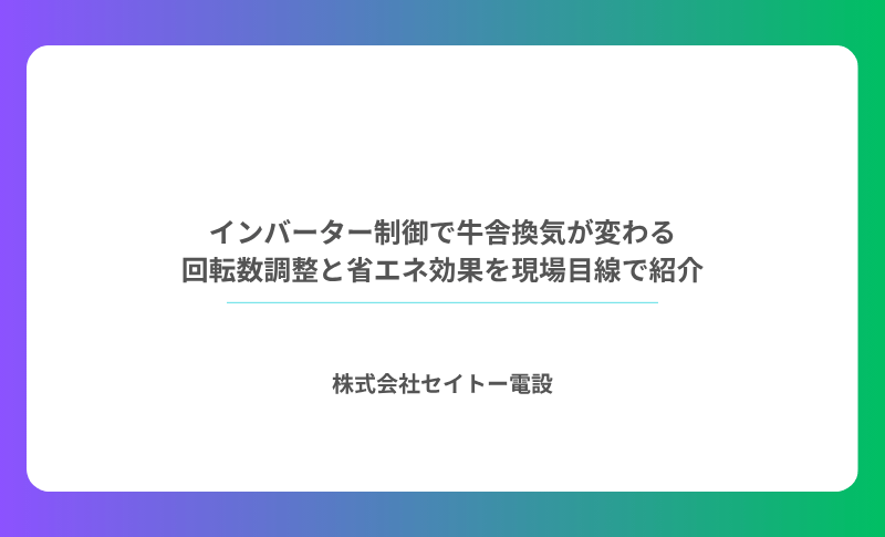 インバーター制御の導入は、単なる省エネ対策ではありません。牛舎環境の精密なコントロール・牛の健康リスクの低減・設備寿命の延長・農家の方の管理負担の軽減——これらが同時に実現する、農業施設の換気設備における質的なアップグレードです。
