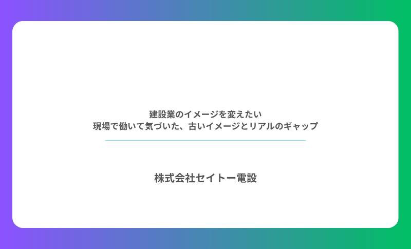 建設業・電気工事のイメージは、確かにまだ古いままの部分があります。