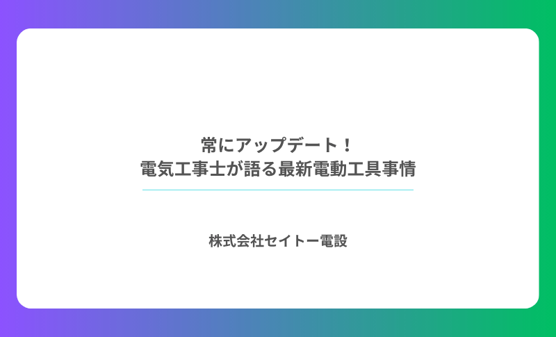 工具は進化し続け、現場は変わり続けます。その変化に柔軟に対応しながら、変わらない誠実さで施工に向き合う——株式会社セイトー電設は、道具と技術の両方をアップデートしながら、これからも地域の暮らしを支え続けます。