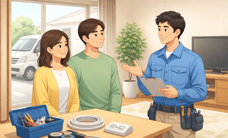 電気工事の専門業者に依頼する最大のメリットは、安全性と確実性です。建物の状況を確認したうえで、適切な配線方法や容量を判断し、将来を見据えた施工を行います。また、工事後に不具合が出た場合も対応してもらえるため安心です。結果的に、無理なDIYでやり直しが発生するより、時間や費用の面でも無駄が少なくなります。
