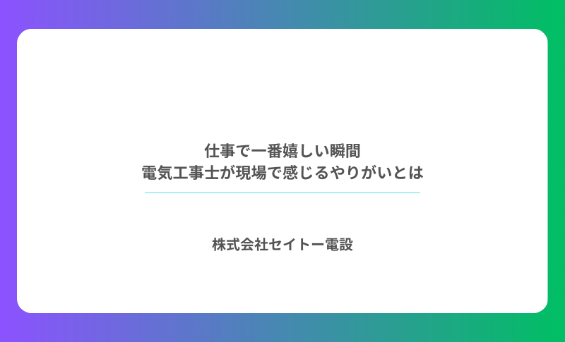 電気工事士の仕事には、現場でしか味わえない「嬉しい瞬間」が確かにあります。