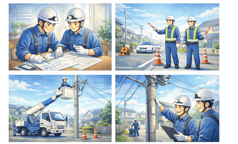- 道端で見かける電柱工事が、具体的にどんな作業をしているのか気になる方