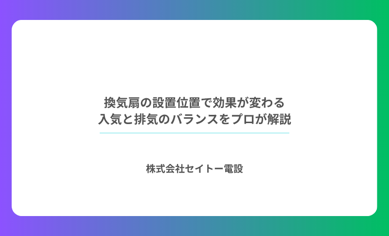 今回は、帯広・十勝エリアで牛舎・農業施設・工場など多くの換気設備工事に携わってきた株式会社セイトー電設の電気工事士の視点から、換気扇の設置位置と入気・排気バランスの考え方をお伝えします。