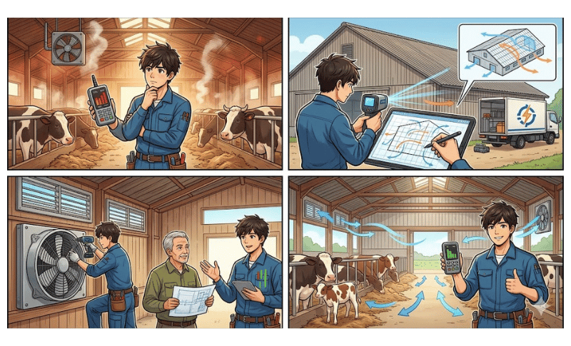 - 牛舎・農業施設・工場など大型施設の換気設備を見直したいと考えている方
