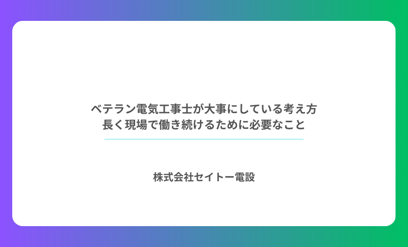 この記事では、現場で長く働いてきた電気工事士が大切にしている考え方を、現場目線で整理してお伝えします。