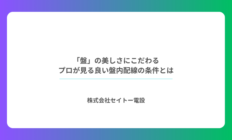 美しい盤内配線は、未来の誰かへの手紙です。株式会社セイトー電設は、10年後・20年後に盤を開ける人が「丁寧な仕事だ」と感じてくれる施工を、これからも一盤一盤に込めていきます。