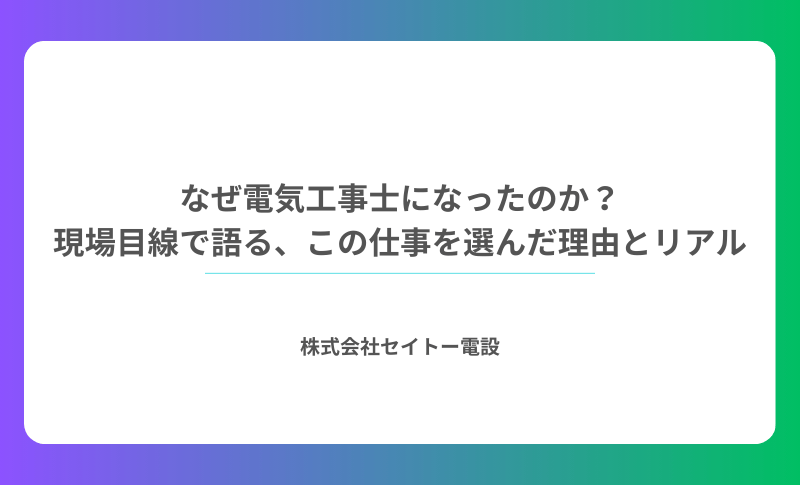この記事では、電気工事士という仕事の入口と、続けていく中で見えてくるものについて、現場目線でお伝えします。