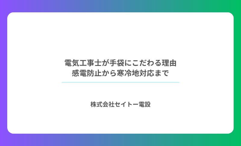 「正しい手袋を、正しい場面で、正しい状態で使う」——この三つが揃ってはじめて、手袋は本来の役割を果たします。装備への丁寧な向き合い方が、職人としての安全への姿勢を表しています。株式会社セイトー電設は、手袋一枚へのこだわりも含めた安全管理を、現場の文化として大切に守り続けます。