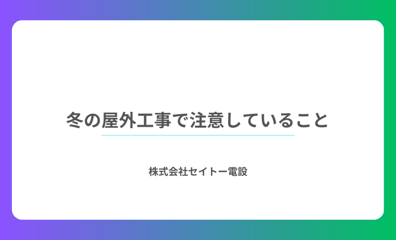 私たち現場の人間にとっても、冬の屋外工事は一年で最も気を遣う季節です。単に「寒いから大変」というだけでなく、電気の資材や建物の状態が夏場とは全く異なるためです。